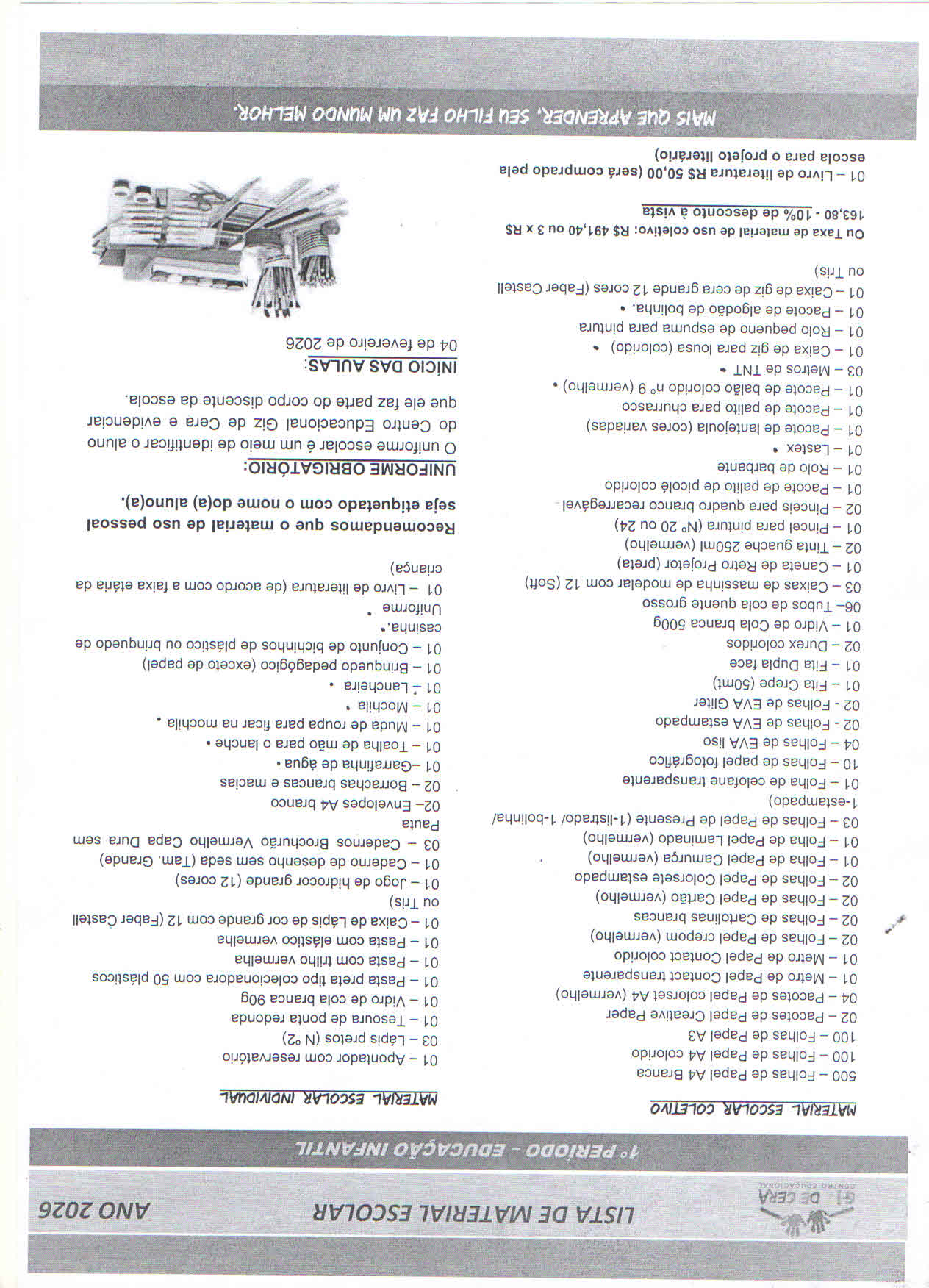 Lista de Material Escolar Coletivo 2° Período - Giz de Cera